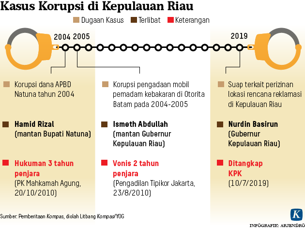 Komisi Pemberantasan Korupsi menangkap Gubernur Kepulauan Riau Nurdin Basirun dalam operasi tangkap tangan atau OTT pada Rabu (10/7/2019) karena diduga menerima suap terkait perizinan lokasi rencana reklamasi di Provinsi Kepulauan Riau. Penangkapan ini menjadi cermin bagaimana buruknya kepala daerah yang disponsori kalangan swasta ketika bertarung dalam pilkada.